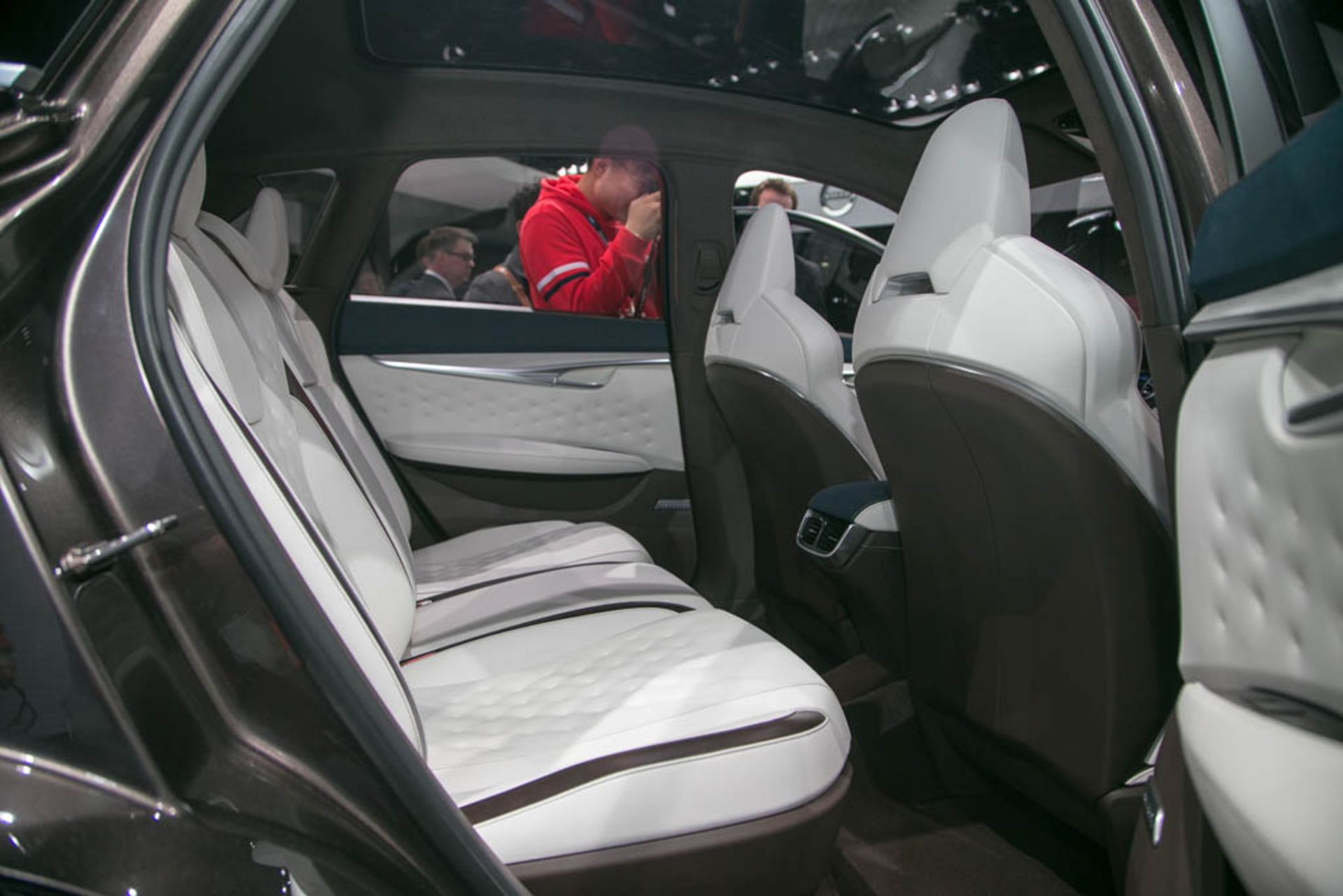 علاوه بر نمای بیرونی، طراحی کابین هم بخش دیگری از مسیر آینده این خودروساز را نشان می‌دهد. چوب، چرم و حتی دوخت بخش‌های مختلف با انواع موجود تفاوت داشته و آن‌قدر ظریف و دقیق کار شده که هر بیننده‌ای در اولین نگاه با خود می‌گویید "این کارِ دست است". با بهره‌گیری از چند نوعِ مختلف چرم شامل جِنیوین (Genuine)، سِمی-آنِلین (Semi-Aniline) و نوبوک (Nubuck) فضای چند بافتی بسیار دل‌چسبی در اتاق حاکم می‌باشد. تعبیه رنگ قهوه‌ای در نوار بالایی، نوبوک آبی در نوار مرکزی و کنسول میانی و رنگ سفید در پایین داشبورد، پنل درب‌ها و صندلی‌ها تضاد چشمگیری ایجاد کرده که به زیبایی کابین می‌افزاید. چوب درخت زبان گنجشک نیز با همان بافت و شمایل طبیعی مورداستفاده قرار گرفته و علی‌رغم حس لوکس به‌هیچ‌وجه مصنوعی نمی‌نماید.