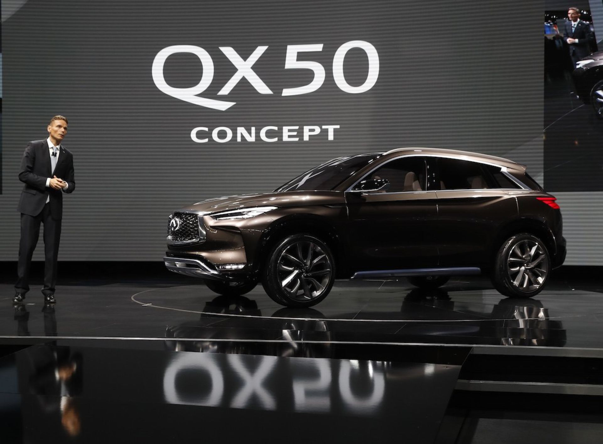 اینفینیتی پس از انتشار آلبوم تصاویر QX50 مفهومی در دسامبر گذشته (آذر 96)، با آوردن آن به نمایشگاه دیترویت، بار دیگر نوع نگاه خود به آینده و مفهوم شعار "High Levels of Craftsmanship" را به نمایش گذاشت. این مدل درواقع نمونه تکامل‌یافته مفهومیِ QX Inspiration Concept بوده و تصویر کاملاً واضحی از سبک و سیاق موردنظر کمپانی برای محصولات آینده به دست می‌دهد.